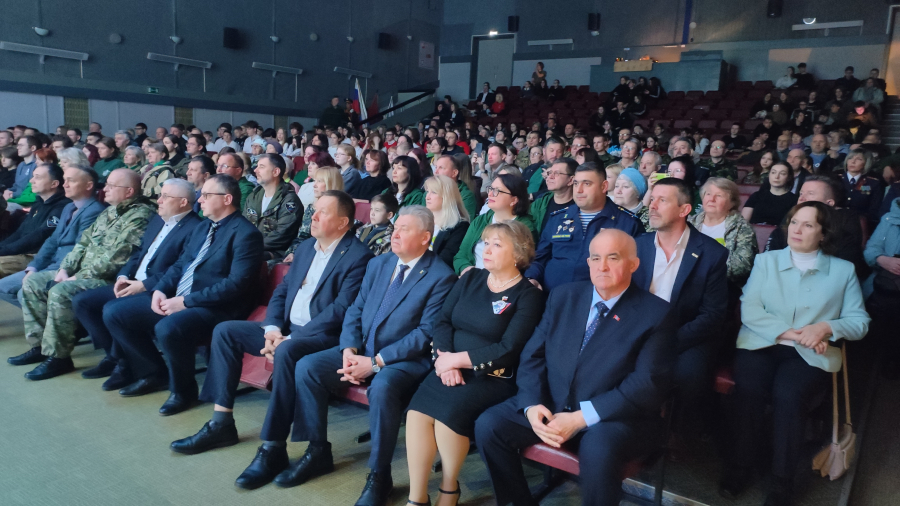 Перед торжественной церемонией, которая прошла в ГКЦ «Энергетик», участники почтили память павших, возложив цветы к Вечному огню и камню «Солдатский лес».